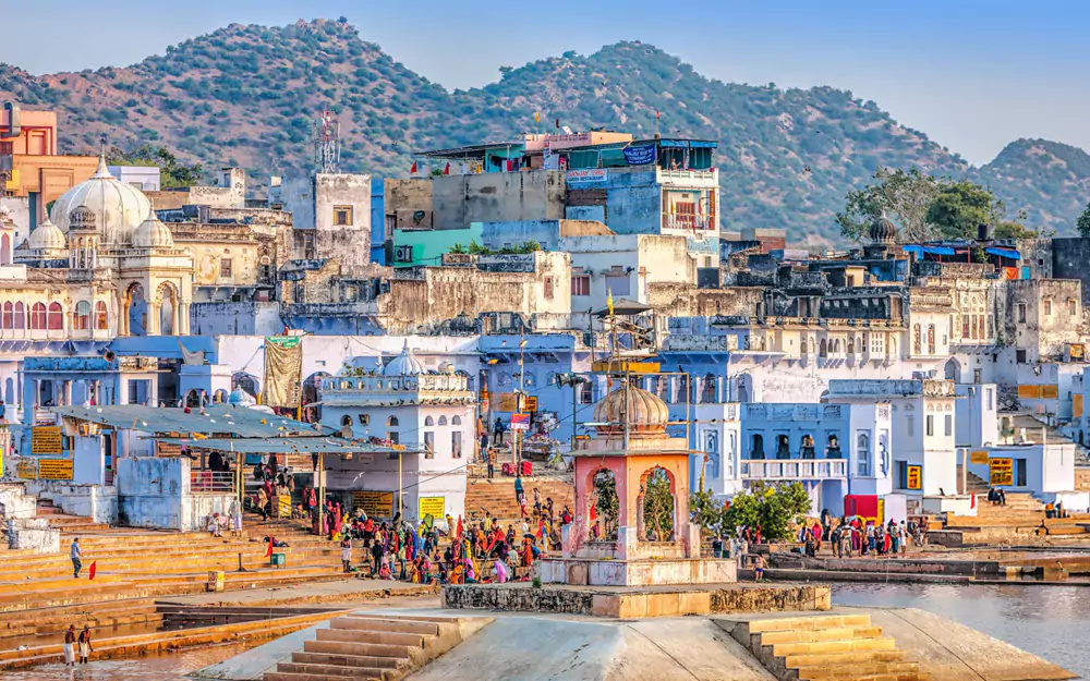 Am Morgen holt Sie Ihr Fahrer von Ihrem Hotel ab und fährt Sie nach Pushkar. Nach Ihrer Ankunft in Pushkar checken Sie in Ihrem Hotel ein und beginnen dann mit einem Reiseführer die Besichtigungstour. Sie besuchen den Pushkar-See, an dem sich viele Ghats befinden, die zum heiligen See hinunterführen. Sein Wasser ist dafür bekannt, die Sünden eines ganzen Lebens abzuwaschen. Die Atmosphäre und spirituelle Stimmung an den Ghats ist beeindruckend und bietet einen tiefen Einblick in den hinduistischen Glauben und die hinduistischen Praktiken. Sie besuchen den Brahma-Tempel (dem Schöpfergott gewidmet), den berühmtesten Tempel in ganz Indien. Auf dem Ratnagiri-Hügel befindet sich auch der Savitri-Tempel, der Brahmas Frau gewidmet ist. Übernachtung in Pushkar.