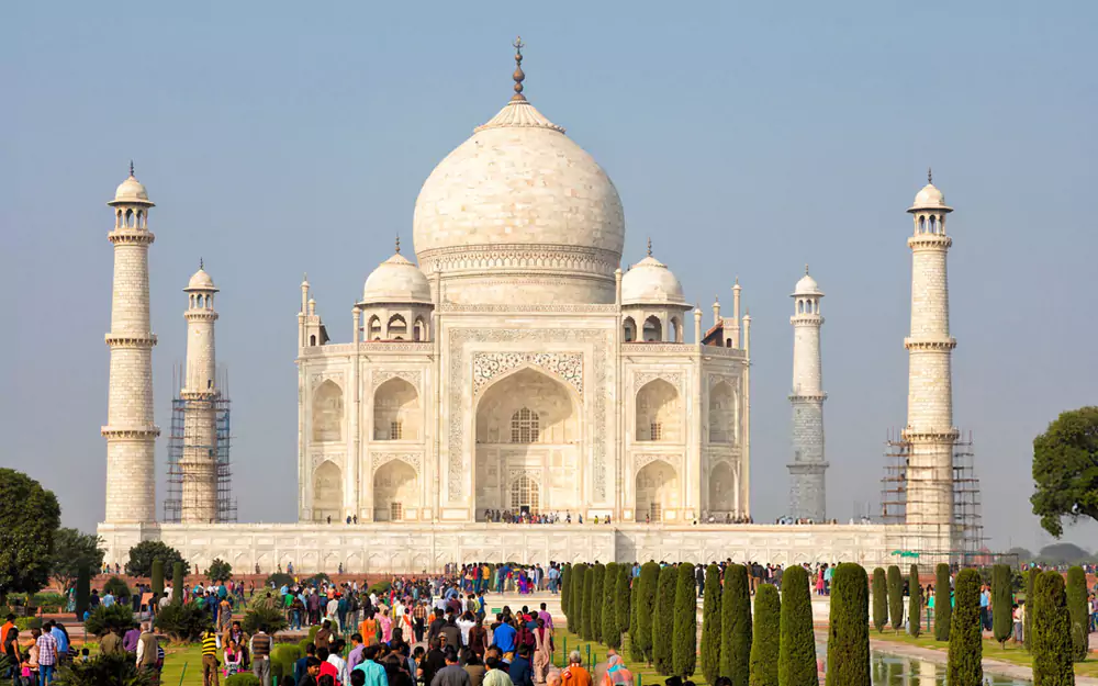 Am frühen Morgen holt Sie Ihr Fahrer ab und bringt Sie nach Agra. Nach Ihrer Ankunft in Agra checken Sie in Ihrem Hotel ein. Nach dem Einchecken machen wir eine geführte Tour zum magischen Taj Mahal. Wir werden nicht viel darüber sagen, da Worte seiner Schönheit nicht gerecht werden können. Sie müssen es selbst sehen. Genießen Sie eine geführte Tour zu anderen spektakulären Orten in Agra, einschließlich einer Fahrt zum Agra Fort (Rotes Fort) und zum Mehtab Bagh: einem Garten, der am Ufer des Yamuna-Flusses angelegt wurde. Außerdem besuchen Sie Baby Taj – das Grab von I'timād-ud-Daulah, bevor Sie zu Ihrem Hotel zurückkehren. Übernachtung in Agra.
