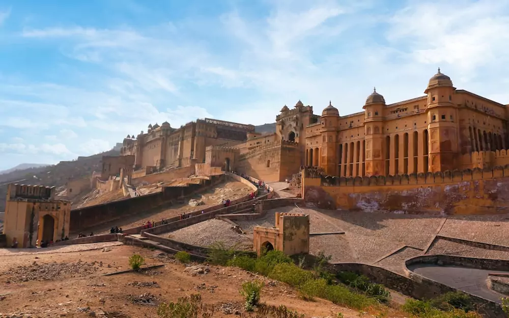 Das prächtige Amer-Fort, ein UNESCO-Weltkulturerbe, wurde 1592 erbaut und erst nach fast zwei Jahrhunderten fertiggestellt. Seine beeindruckende Struktur dominiert die Skyline von Jaipur und dient als Symbol für seine reiche Geschichte. Dieses historische Monument ist ein architektonisches Wunder, das seit seiner Fertigstellung im 18. Jahrhundert die Zeit überdauert hat.