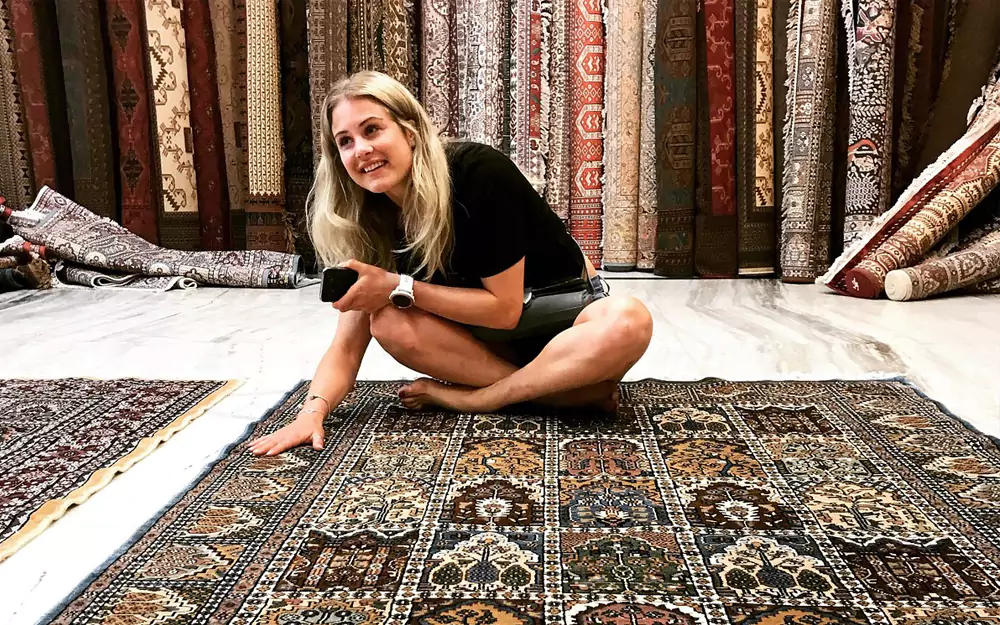 Einer der schönsten Orte mit einer großen Auswahl an handgefertigten, handgeknüpften Teppichen aus Seide und Wolle mit modernen, traditionellen und zeitgenössischen Designs sowie Übergangsdesigns. Ein Haus für ethnische und zeitgenössische Textilbekleidung und -einrichtung, das sich seit 1985 auf maßgeschneiderte Teppiche und Textilien für individuelle Bedürfnisse spezialisiert hat.