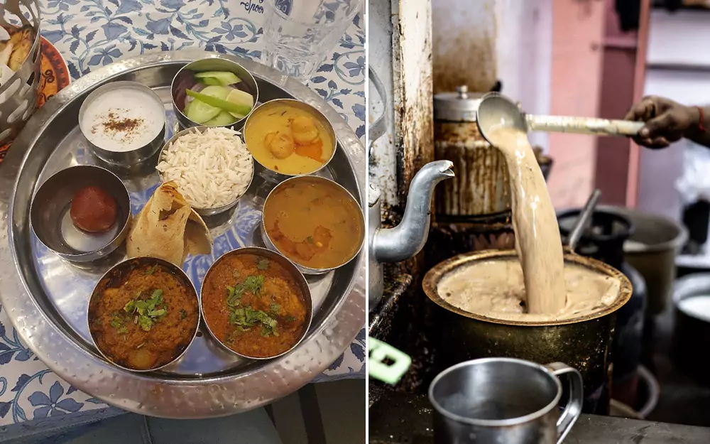 - Rajasthani-Thali – Traditionelle Spezialitäten wie Dal-Baati-Churma und Gatte Ki Sabzi.