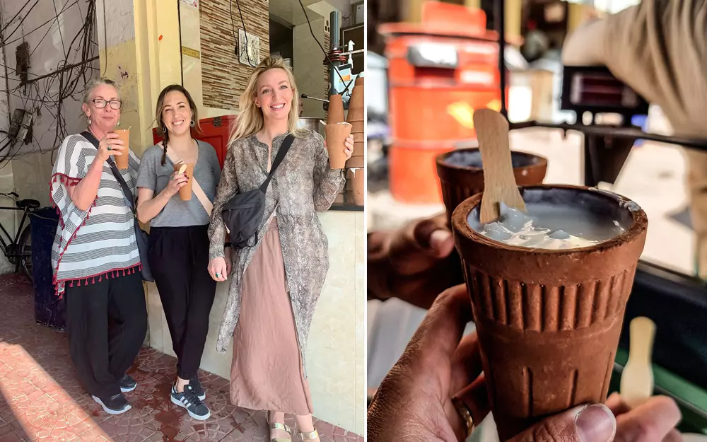 Genießen Sie ein kühles und cremiges Glas Lassi von Lassiwala, um Ihren Durst zu stillen. Dieses berühmte Getränk ist für seine dicke, samtige Konsistenz bekannt und wird mit Malai (Sahne) verfeinert – ein absolutes Muss.